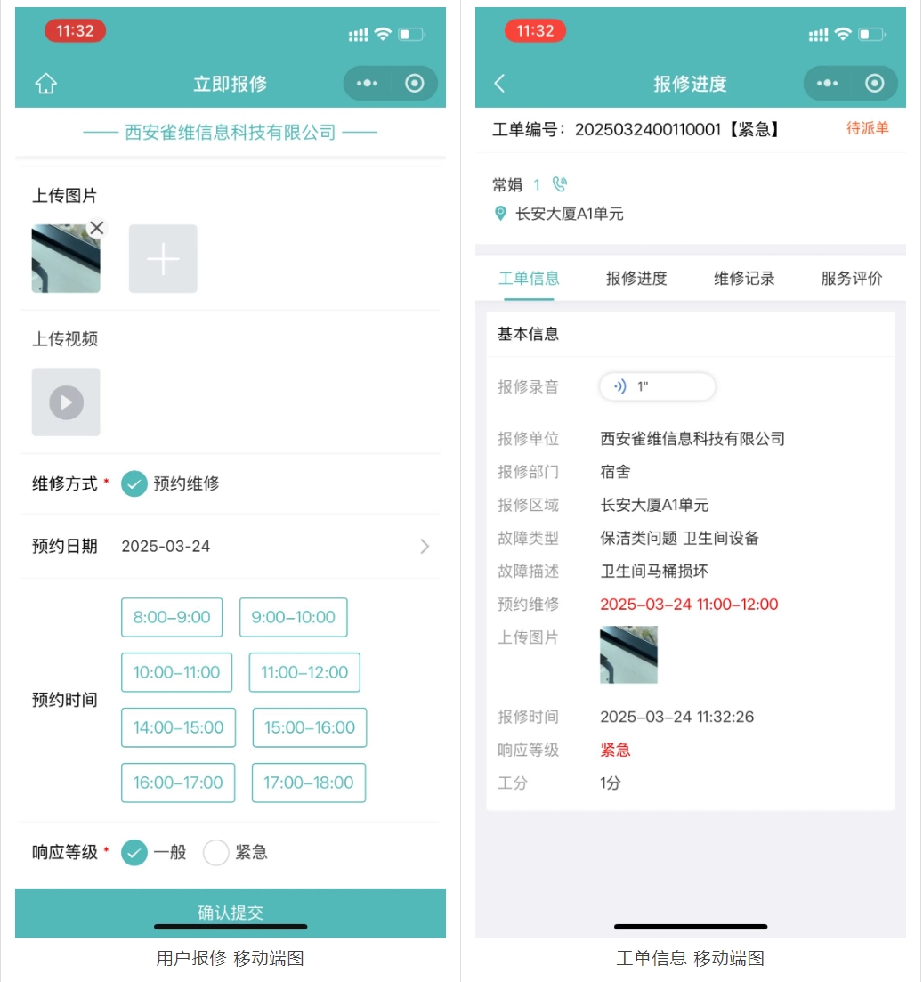 应用场景:用户在报修工单时,可选择管理员预先设定的特定时段进行预约报修。